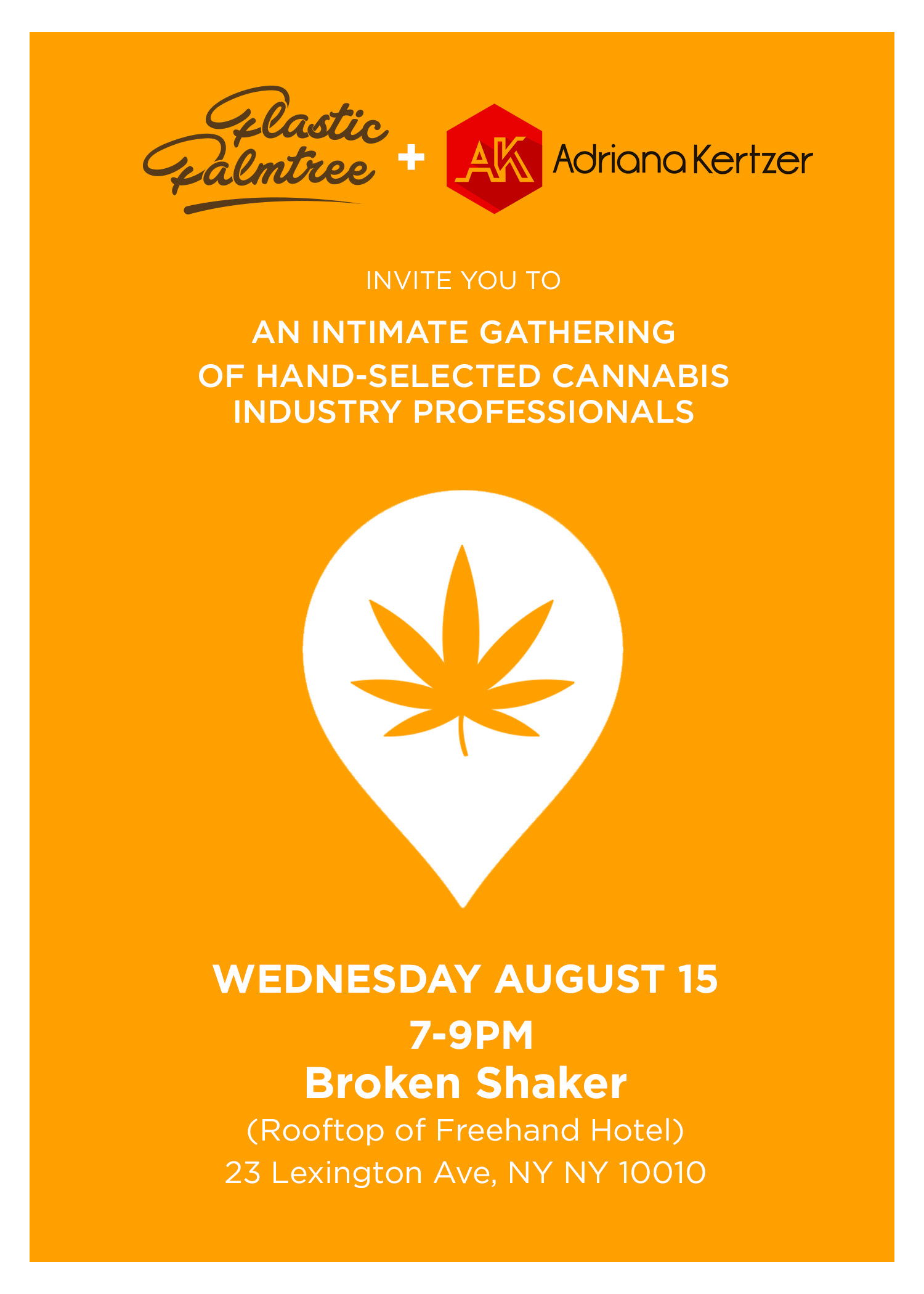 In 2018, I began co-hosting happy hours for individuals already active in the cannabis industry with Masha Kupets Navarre, founder Plastic Palmtree (branding agency focused on the cannabis, tech, wellness & entertainment industries).